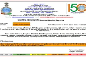 रांची: झारखंड के कई इलाकों में 22 और 23 सितंबर को हल्के से मध्यम दर्जे की बारिश होने की संभावना है। तेज हवा चलने और आकाशीय बिजली गिरने की भी आशंका है। इसे लेकर विभाग ने येलो अलर्ट जारी किया है। झारखंड के विभिन्न स्थानों पर 20 को बारिश की संभावना