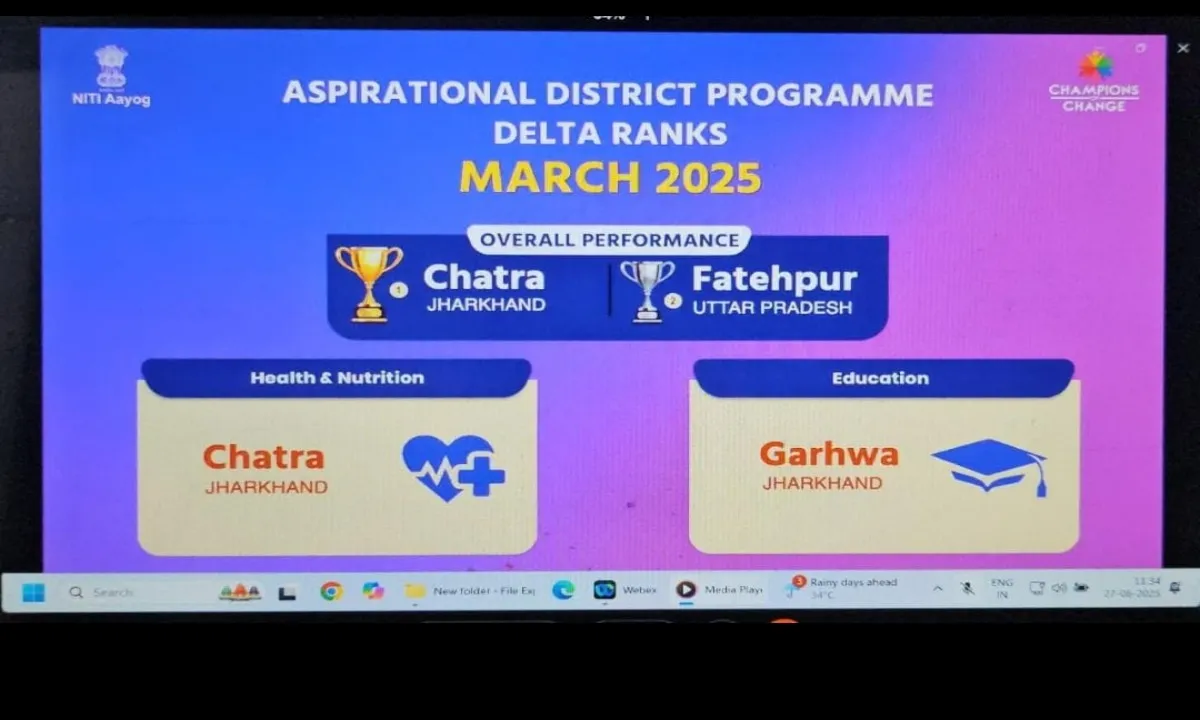 आकांक्षी जिला कार्यक्रम में चतरा ने हासिल की शीर्ष रैंकिंग, मिलेगा 10 करोड़ रुपये का पुरस्कार