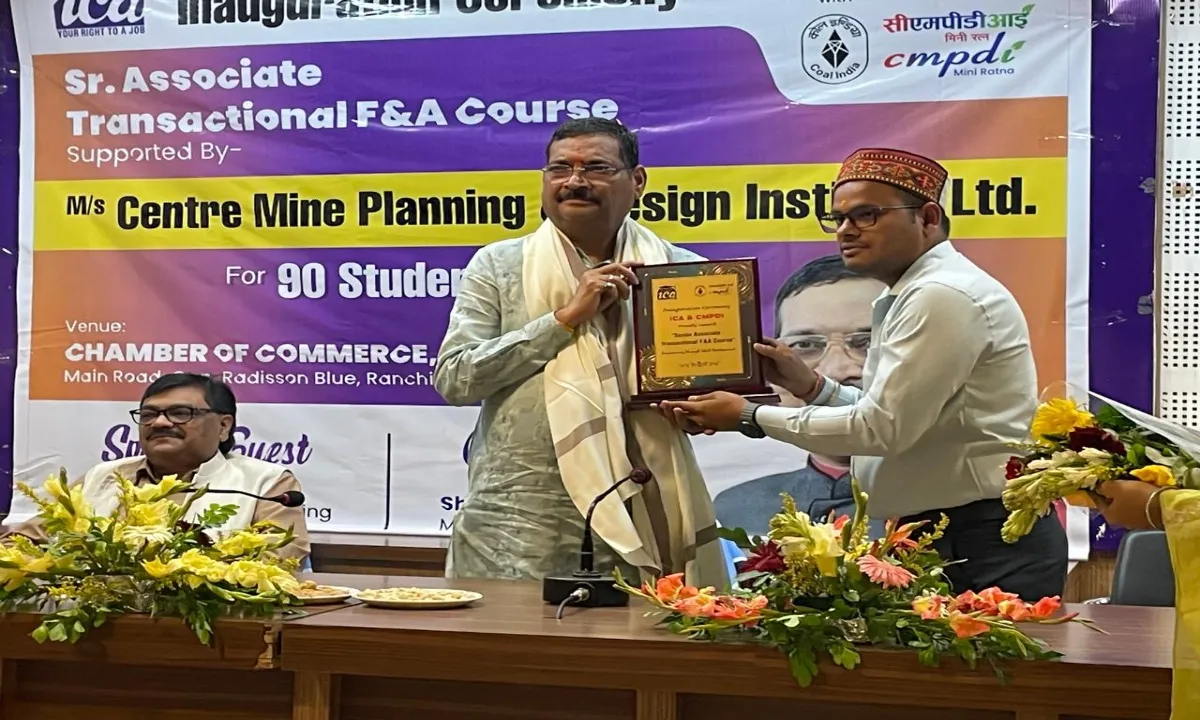 चार महीने का यह अल्पकालिक गैर आवासीय प्रशिक्षण आईसीए फाउंडेशन के मेन रोड, रांची स्थित प्रशिक्षण केन्द्र में आयोजित किया जा रहा है। पाठ्यक्रम, संरचना और अनुसूची नेशनल स्कील क्वाइलीफिकेशन फ्रेमवर्क (एनएसक्यूएफ) और सेक्टर स्कील काउंसिल (एसएससी) द्वारा निर्धारित मानकों के अनुरूप है। इस अवसर पर सीएमपीडीआई के महाप्रबंधक सीएसआर आर0के0 महापात्रा, महाप्रबंधक संदीप भगत तथा आईसीए फाउंडेशन-कोलकाता से रजनीश पांडे उपस्थित थे।